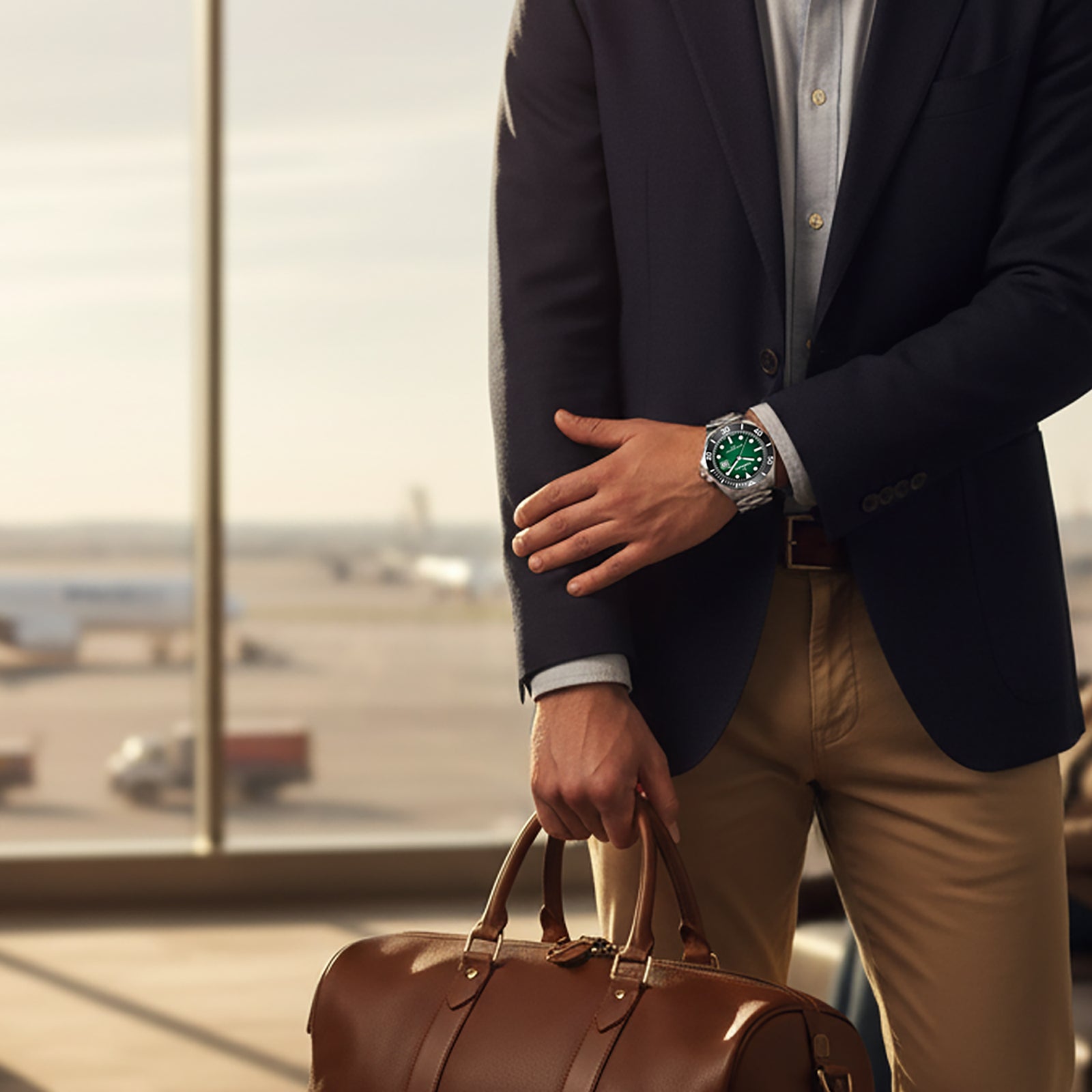 Built like a modern classic. Tornado Lumina Analog watch is built on 316L stainless-steel case with crisp vertical brushing and polished edges. Around the dial sits a ceramic, unidirectional bezel with engraved markings; ceramic keeps its color and resists scratches, so the bezel stays crisp, the sapphire-coated crystal and date magnifier keep the deep-green gradient dial clear. Luminous markers pop at a glance. Inside, the Miyota 2115 Japanese quartz movement keeps precise, no-fuss time. Made to wear, anywhere.The solid presidential bracelet drapes smoothly and locks with a push-button deployant. At 42mm, it has presence yet slides under a cuff—perfect from office to weekend. Water resistance: 10 ATM (100 m) for daily life and short swims. Finished with a 3-year warranty.