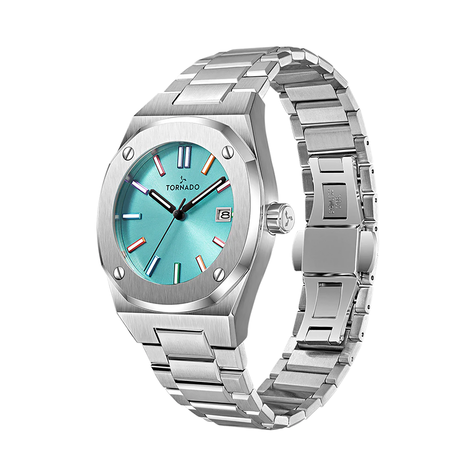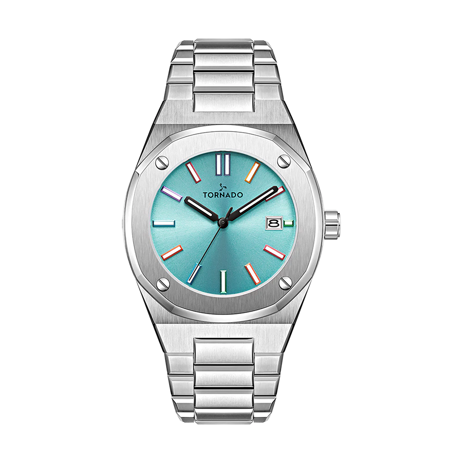 The T23003 SBSL takes a classic case shape and gives it a fresh, playful twist. The Tiffany blue sunray dial instantly pops, while the multi-color luminous markers add a subtle hit of color that comes alive at night. It’s the watch you wear with white sneakers and a tee, a linen shirt at brunch, or a casual blazer when you want your wrist to do the talking. The integrated 316L stainless-steel bracelet and 42mm octagonal-bezel case keep the look grounded in luxury, with brushed links and polished sides that feel as good as they look. Inside, the Miyota 2315 Japanese quartz movement with date display sits under a sapphire-coated crystal, and 10 ATM water resistance keeps up with real life. It’s a men’s luxury stainless-steel watch that looks laid-back, but feels seriously high-end.