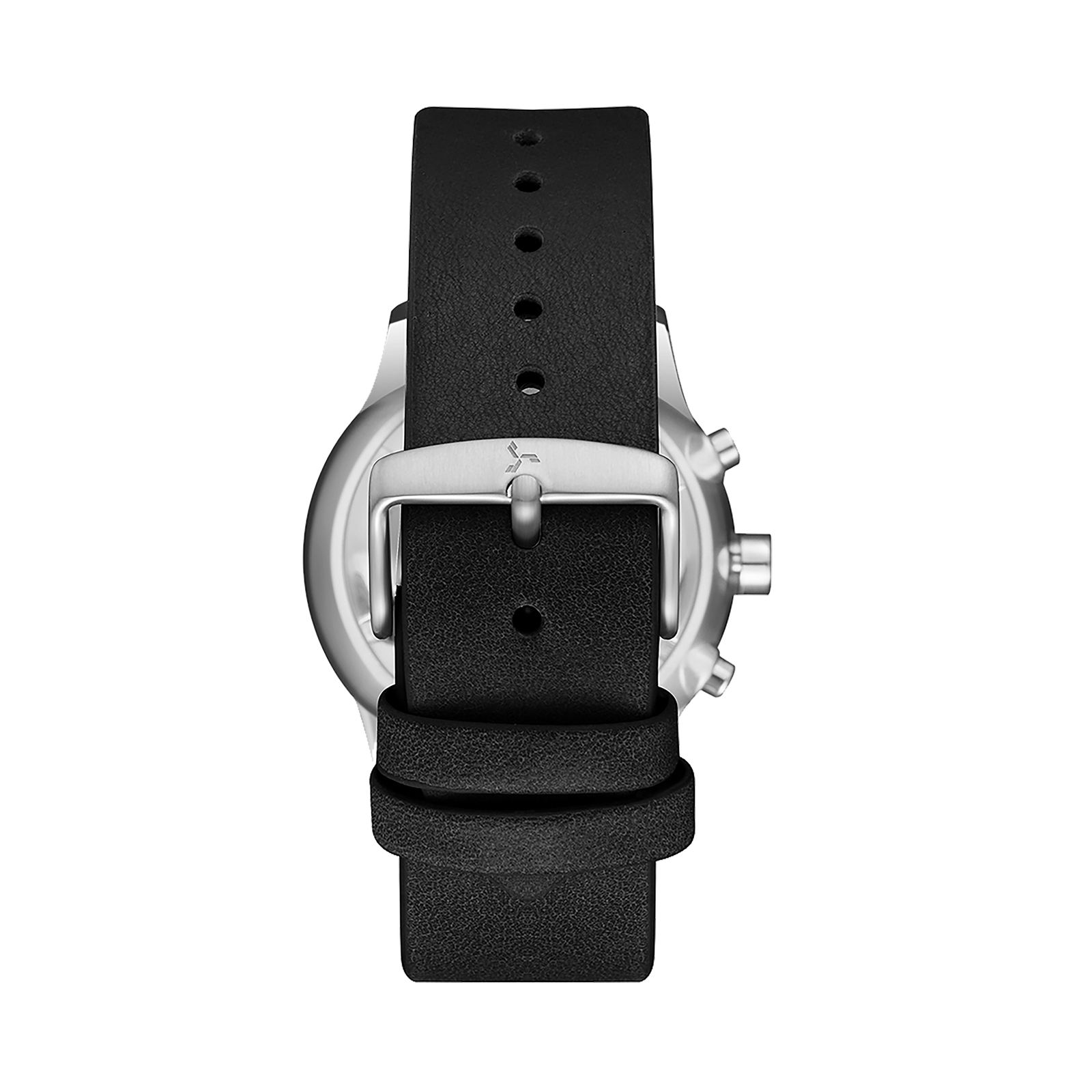 A brushed silver case in 316L stainless steel gives this TORNADO CLASSIC build a clean, restrained presence, with a balanced 42 mm round profile and a measured 12.40 mm thickness. The black sunray dial adds depth through shifting light, while luminous hands and hour markers maintain clear readability without disrupting the dial’s understated tone. The multifunction layout is powered by the Seiko VD53 movement, chosen for steady performance and practical functionality. A sapphire-coated crystal sits above the dial, offering clarity and added surface protection. The watch is fitted with a black genuine leather strap, tapered from 22 to 18 mm and secured with a traditional tang buckle, matching the dial and reinforcing its classic character. Rated at 5 ATM water resistance and backed by a three-year warranty, the piece blends familiar proportions with dependable construction and everyday usability.