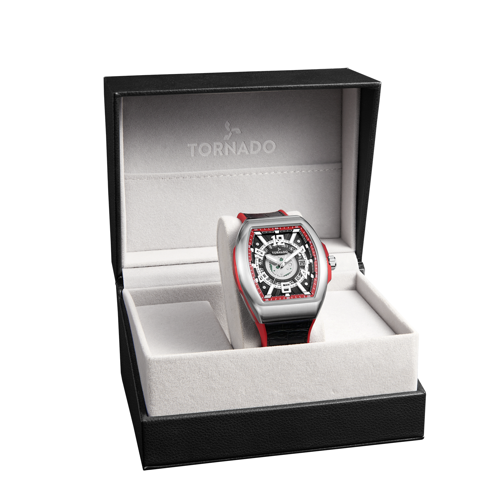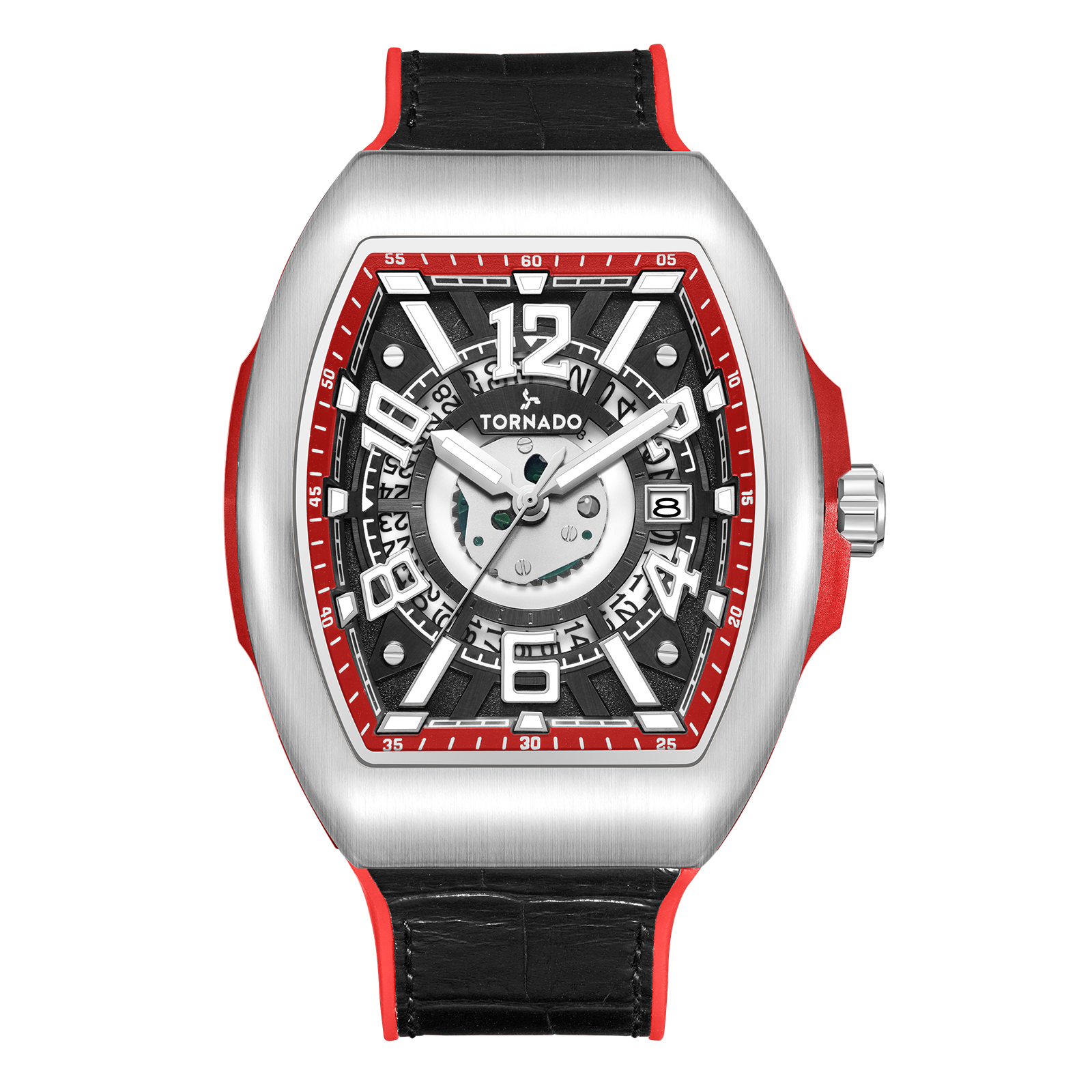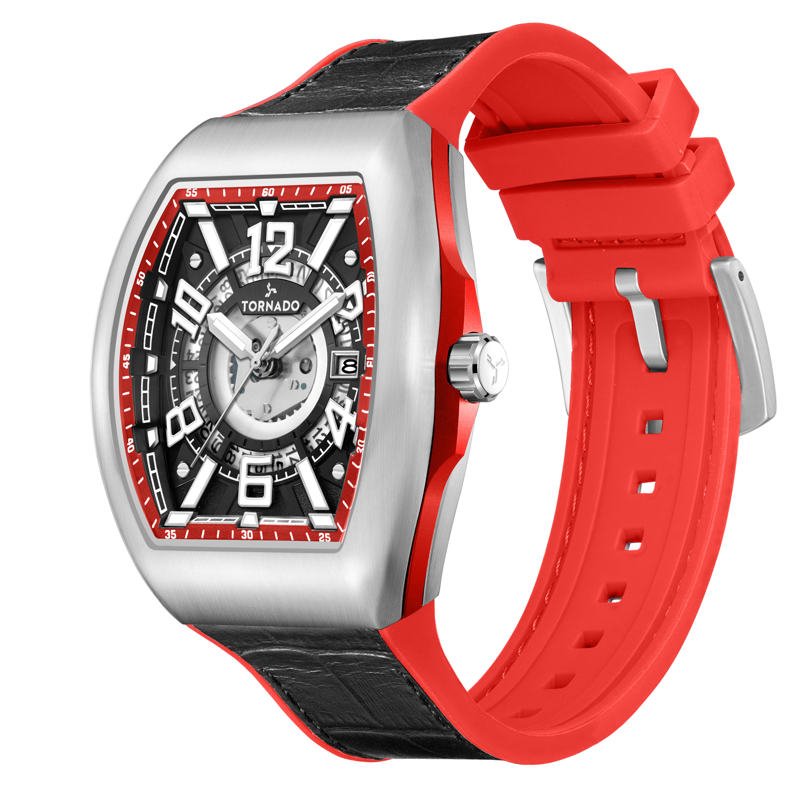 Stainless Steel Brushed-finish case with integrated red lining towards the crown area