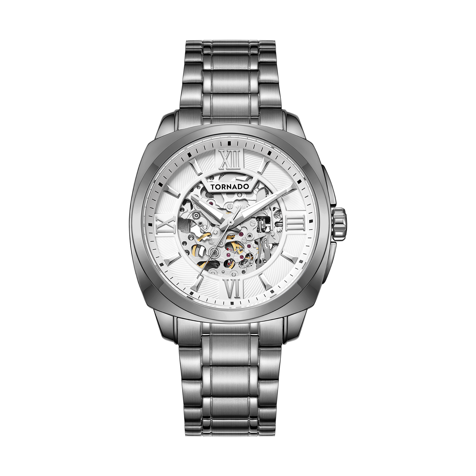The AUTONOVA AUTOMATIC in grey and white presents the collection at its most contemporary and technical. The 42mm square case is outlined with a round bezel, and finished with brushed and polished surfaces for a subtle industrial tone. A matching stainless-steel strap with a butterfly clasp reinforces the aesthetic. The white dial brings contrast and clarity, allowing the design details to stand out. At the centre, the skeletonized opening reveals the automatic movement in motion, while the surrounding outer ring features a radial guilloché pattern. Inside, the Miyota 8N24 automatic movement delivers reliable performance and visual intrigue through its open-worked construction. Sapphire-coated glass protects the dial from daily wear, preserving legibility over time. With water resistance rated at 10 ATM, and a three-year warranty, this Autonova Automatic is the modern expression of a mechanical design, built for everyday use.