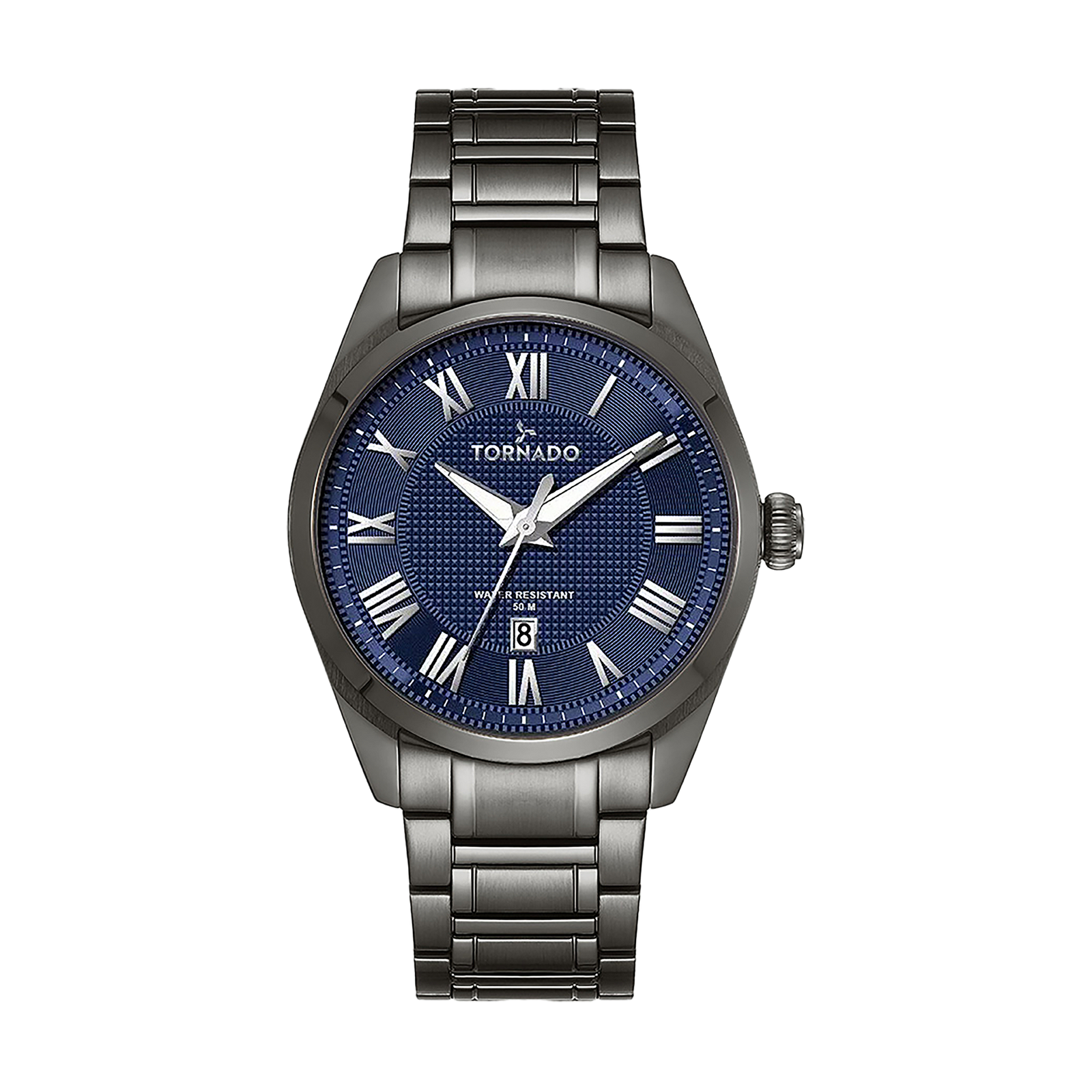 The CELESTIA CLASSIC is a contemporary take on the classic design language of the collection. Its 42 mm round case is crafted from solid stainless steel with brushed and polished surfaces, finished in a refined grey tone that gives the watch a modern character. The integrated stainless-steel bracelet mirrors the case finish, combining polished and brushed links for visual depth and durability. A push-button deployant buckle ensures a secure fit while maintaining a streamlined appearance. A blue dial adds contrast and adds to the cool tone, while offering a clean layout with a date display positioned at six o’clock for convenience. At its core, the watch is powered by the reliable Miyota 2115 quartz movement, known for steady performance and low maintenance. The dial is protected by sapphire-coated glass, while a 10 ATM water resistance rating makes the watch capable of withstanding occasional water exposure. Backed by a three-year warranty, this Celestia Classic model delivers a composed balance of modern hues in a classic package.