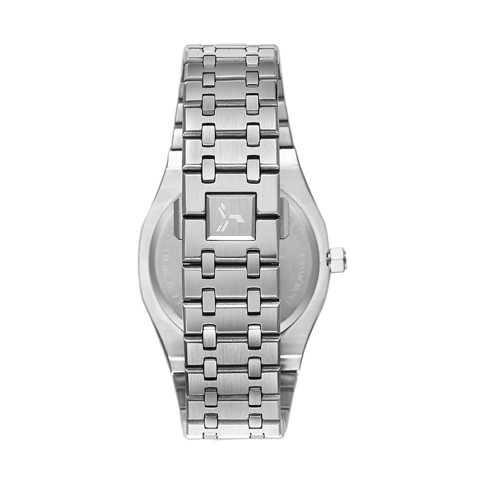 Men's casual analog watch featuring a striking blue dial housed in an octagonal stainless steel case with brushed and polished finish. Paired with a matching stainless steel bracelet and secured with a double-pusher butterfly clasp for a seamless fit. Powered by reliable Miyota GM15 Japanese quartz movement, protected by sapphire-coated glass, and water resistant up to 5 ATM, making it ideal for everyday wear.